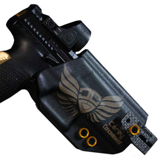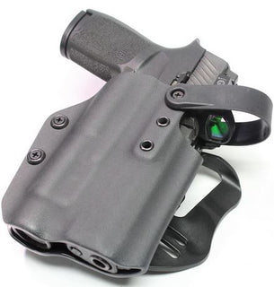 *Holster selection requires clearance for extended ledge. Refer to Align Tactical's Compatible Holster Manufacturers for select models from Black Scorpion Gear, Werkz, Safariland, Red Hill Tactical, Priority 1 Holsters, GX Products, Red River Tactical, Black-Rhino Concealment, Precision Holsters, Grey Man Solutions, Custom Holster Solutions, Orpaz Defense, Tier1 Concealed, TACRIC, Tenicor, Crossbreed, Raven Concealment Systems, American Concealment Solutions, SOUSA Tactical, Sticky Holsters, Recover Tactical, U.S. Duty Gear, and Lytton Custom Holsters.